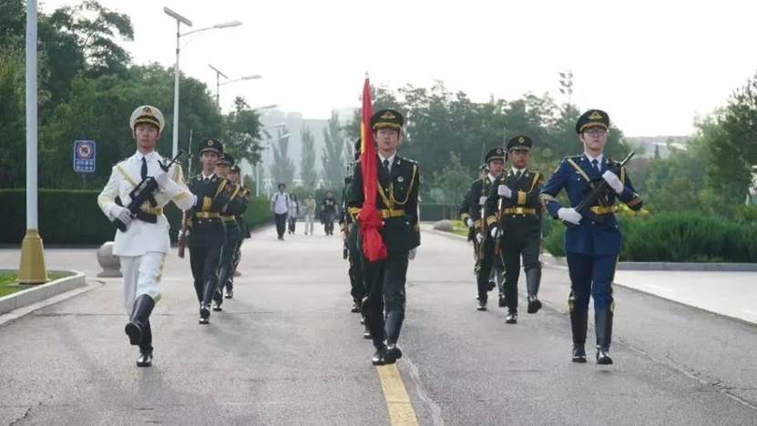 当第一缕晨曦洒向校园,全体学生齐聚升旗台前。国旗护卫队队员们身着整齐的军装,迈着铿锵有力的步伐,护送国旗走向升旗台。他们身姿挺拔,眼神坚毅,每一步都踏出对祖国的忠诚与热爱。当鲜艳的五星红旗在晨风中冉冉升起,在场的同学们庄严肃立,饱含对党的无限忠诚和对祖国的深深祝福。
