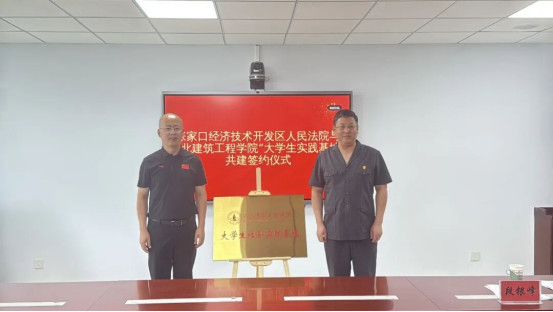 在双方代表的共同见证下,经开区法院党组书记、院长段银峰与校团委书记李晓庆签署《河北建筑工程学院社区实践(社会实践)服务基地共建协议书》,“张家口经济技术开发区人民法院与河北建筑工程学院大学生实践基地”正式揭牌,闪光灯聚焦的不仅是牌匾,更是校地合作迈向新篇的起点。