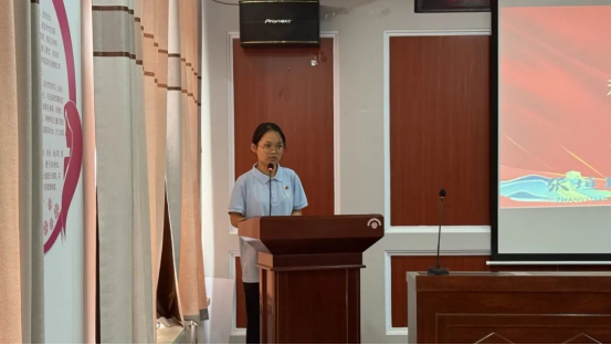 张垣知行宣讲团成员许萍首先登台,向大家介绍这支于2024年成立的大学生宣讲团队伍——张垣知行宣讲团。张垣知行宣讲团始终坚持以“把青春和实践写在祖国大地上”为目标和使命,在学校和指导老师的号召与指引下,参与到普法、助残、文旅等多方面。2024年团队被下花园区人民法院荣聘为法治宣传大使;荣获雪国崇礼2024年暑期实践优秀团队,在“2024年全国大学生文明旅游”活动中荣获优秀团队。”