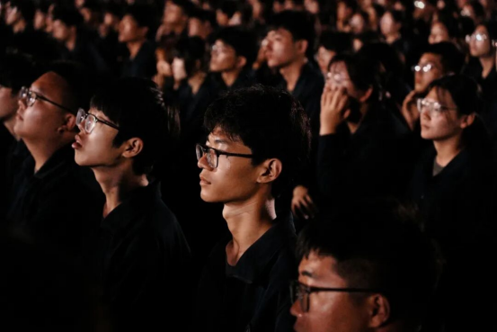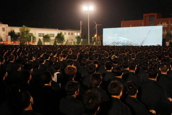 3000余名新生在操场整齐列坐,共同观看史诗影片《百团大战》。观影过程中,同学们全神贯注,银幕上出现八路军将士前赴后继、浴血奋战的画面时,现场多次响起热烈掌声。